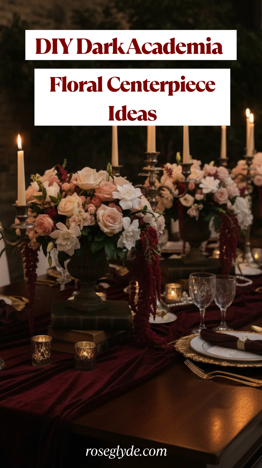 Floral Centerpieces for Dark Academia Weddings: Deep Reds, Browns & Plum Blooms