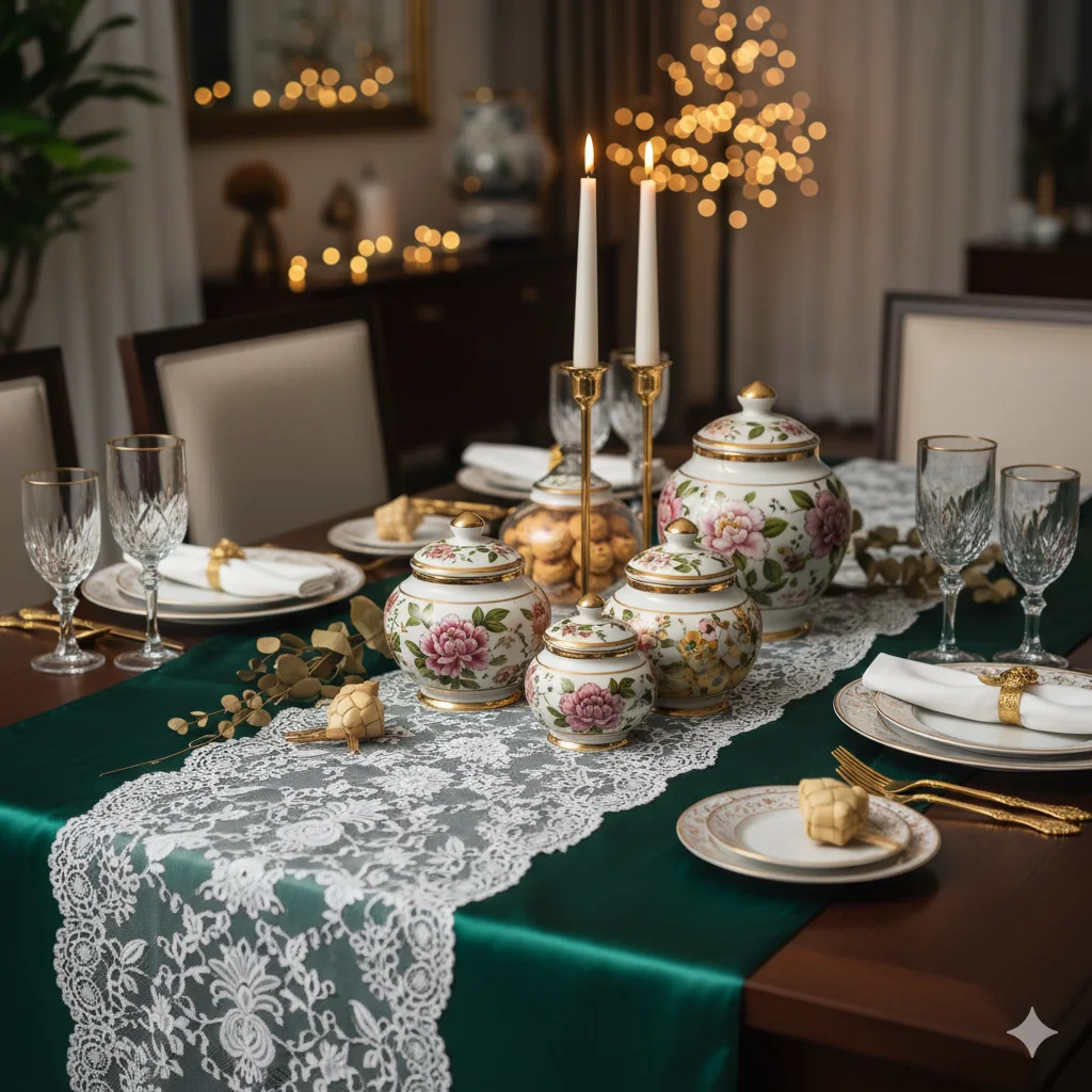 This approach keeps the atmosphere tenang dan mewah (calm and luxurious), perfect for festive mornings or cozy evenings.