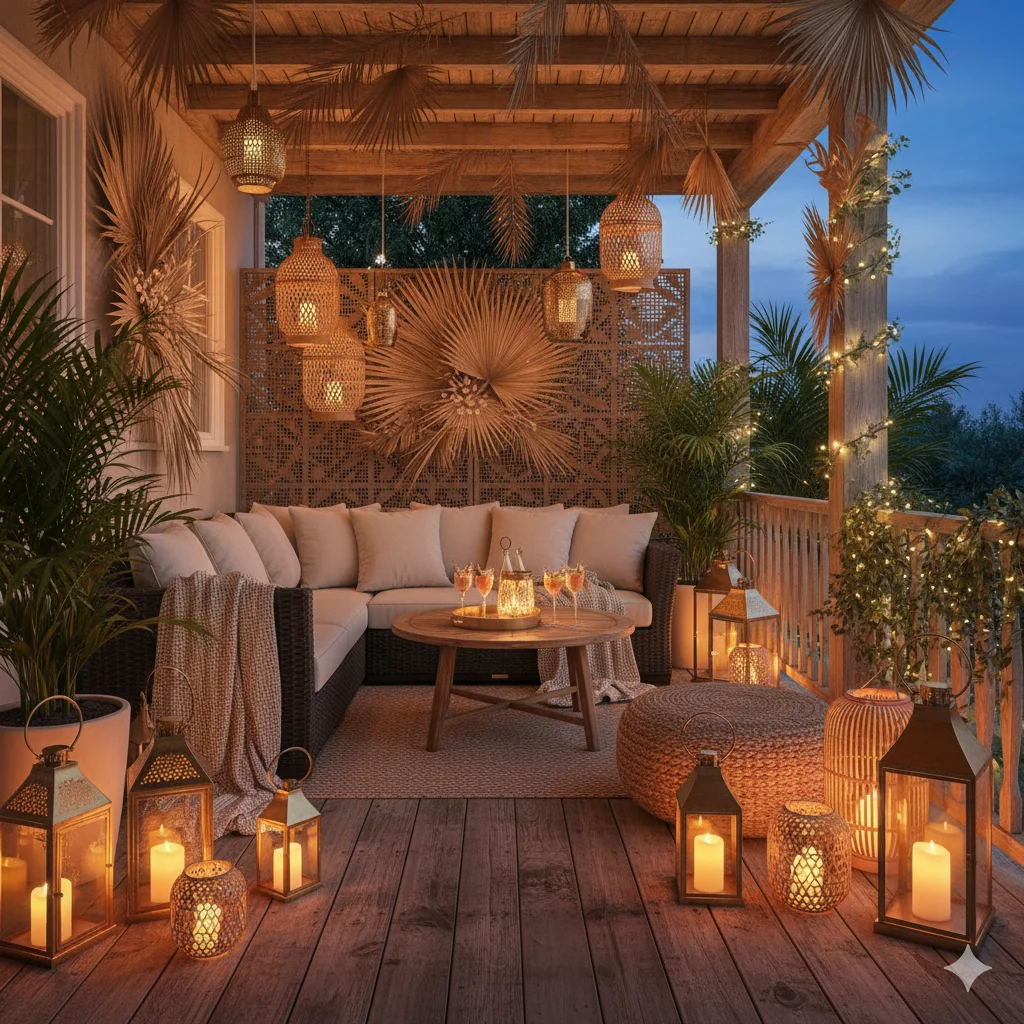 Lanterns and pelita: Hang decorative lanterns along fences or walls for a nostalgic village feel. Modern LED pelita lights also add eco-friendly charm.